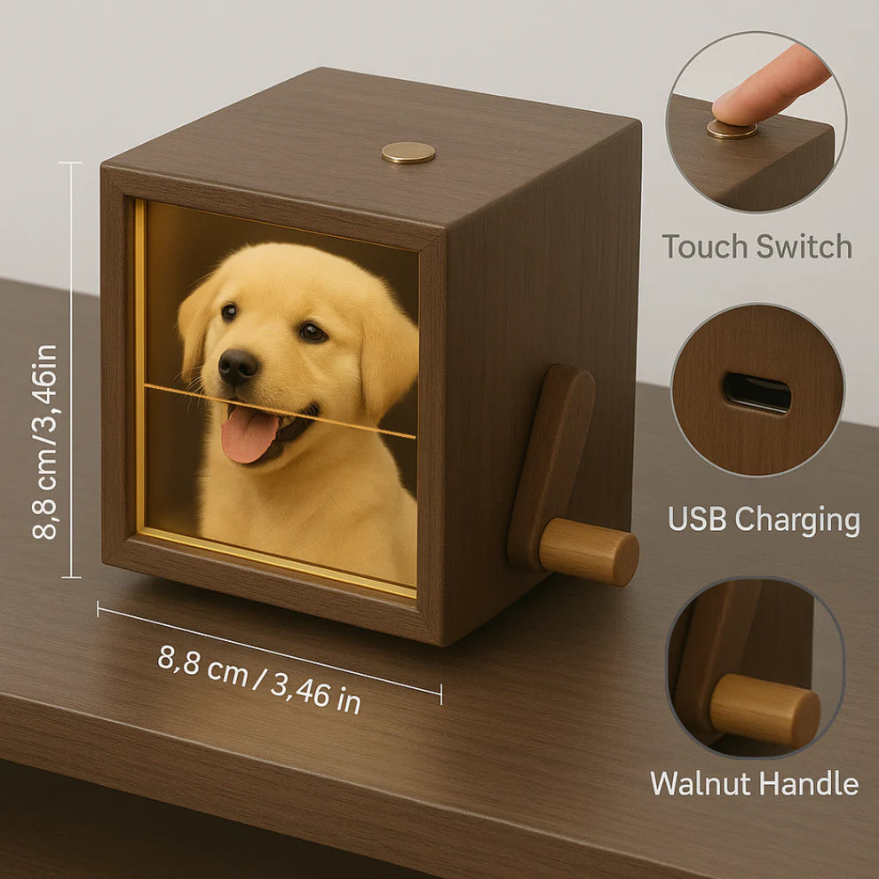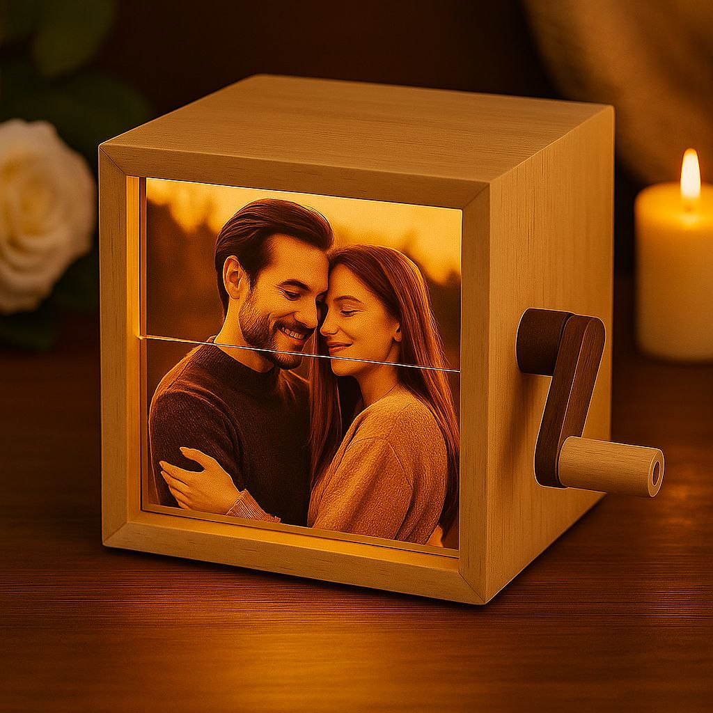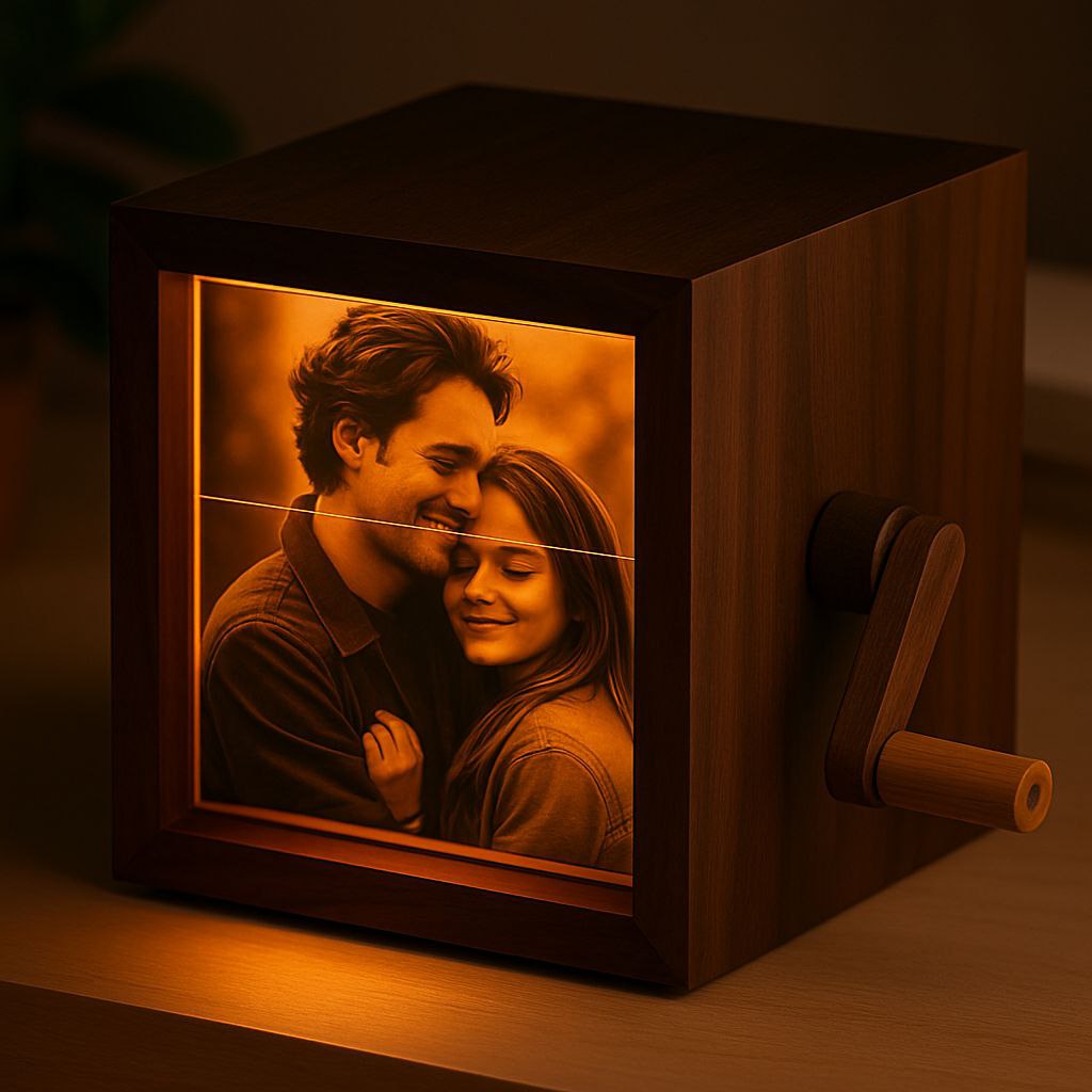The SnapScroll™ Personalized Light-Up Photo Box Turn Your Favorite Photo into a Glowing, Moving Memory! Looking for the perfect gift that’s personal, magical, and unforgettable? Meet SnapScroll™ – a handcrafted wooden photo box that lights up your favorite moment and brings it to life with a gentle spin.